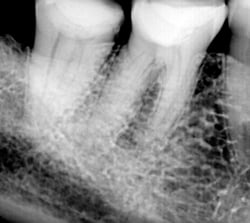 Caso 1 - Dente 13 atrésico, com calcificação severa.